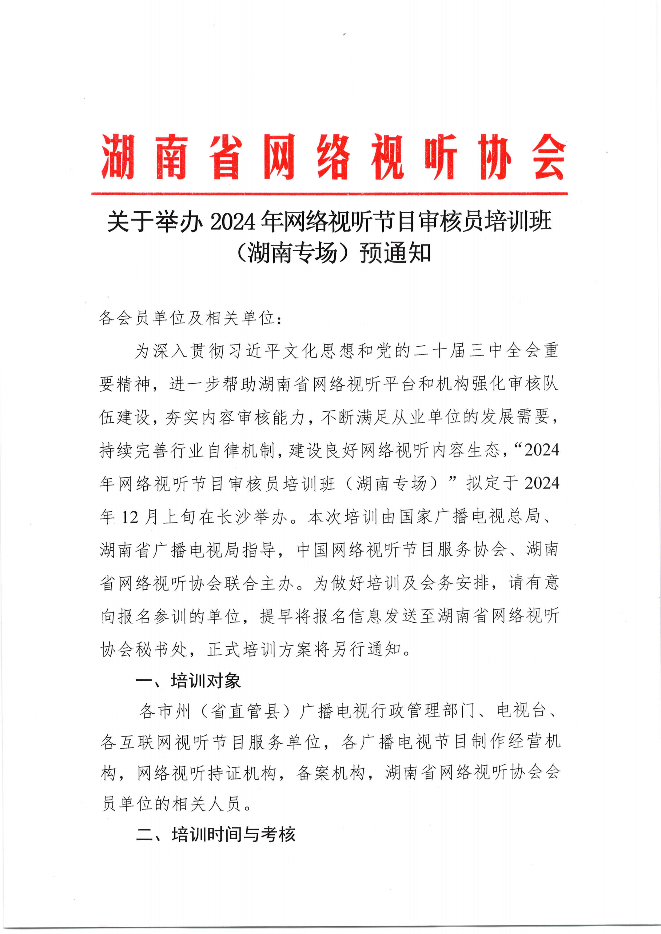 关于举办2024年网络视听节目审核员培训班 (湖南专?。┰ねㄖ?/p> ...[详细]